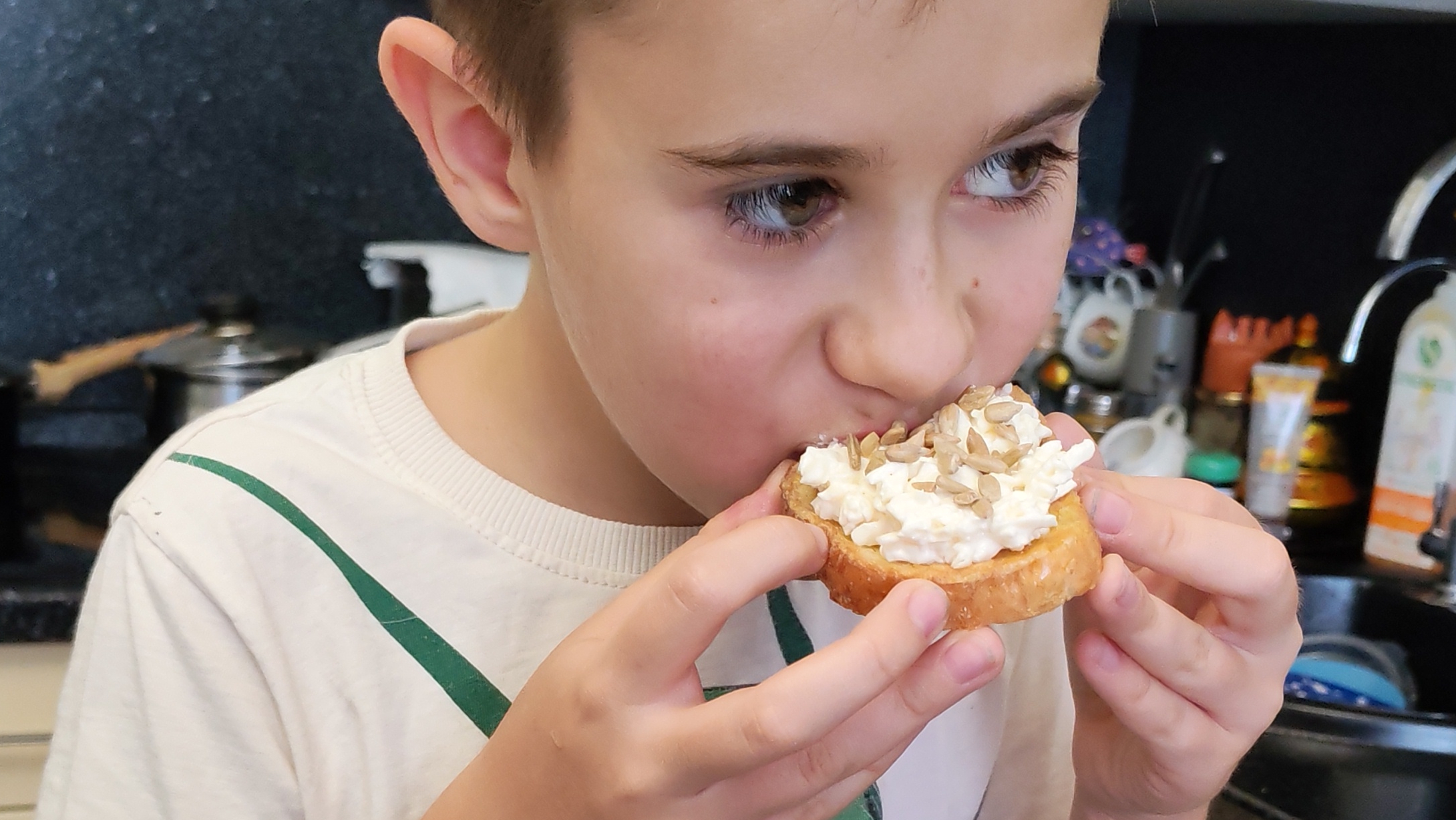 МК от внука. Готовит салат, сыр, чеснок и майонез.