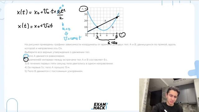 На рисунке приведены графики зависимости координаты от времени для двух тел А и В - 23205
