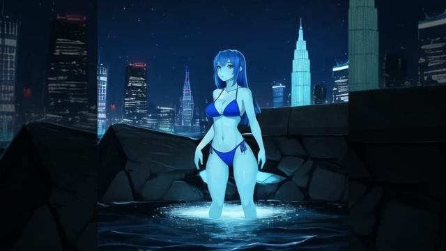 Девушки купаются в ночной воде.