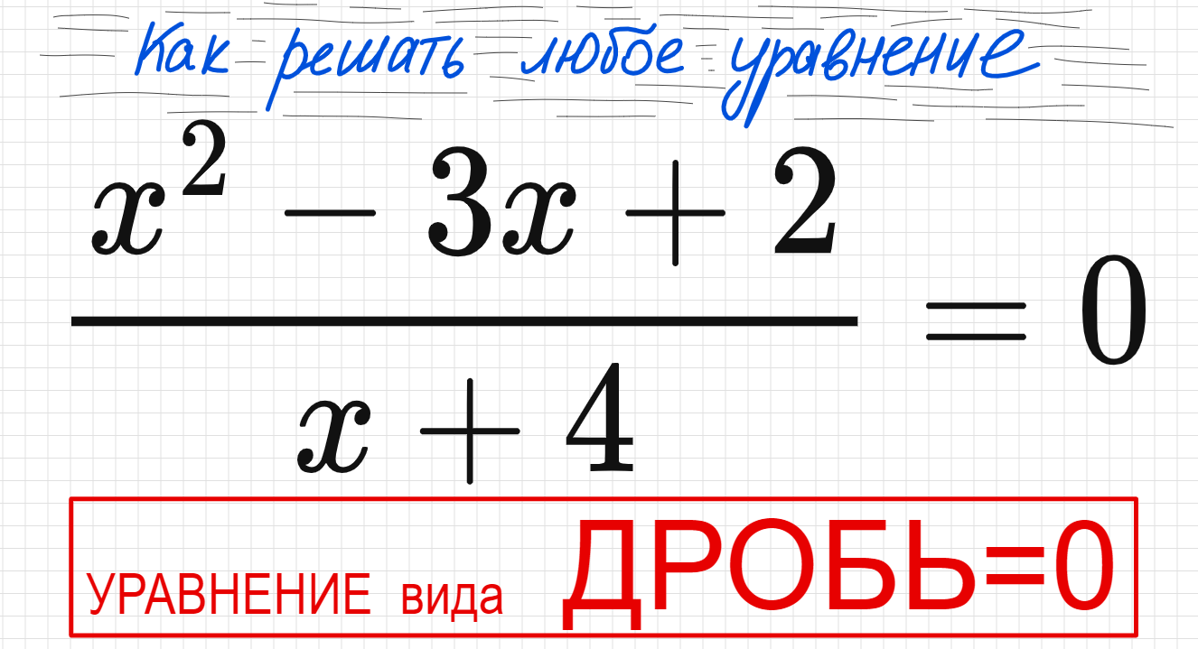 №4 Дробное уравнение (х^2-3x+2)/(x+4)=0 Как решать уравнение с дробями Как избавиться от дроби в ура