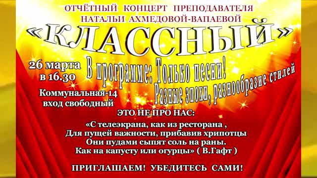 "Классный" Отчётный концерт преподавателя эстрадного пения Натальи Ахмедовой - Вапаевой 26 03 2024г.