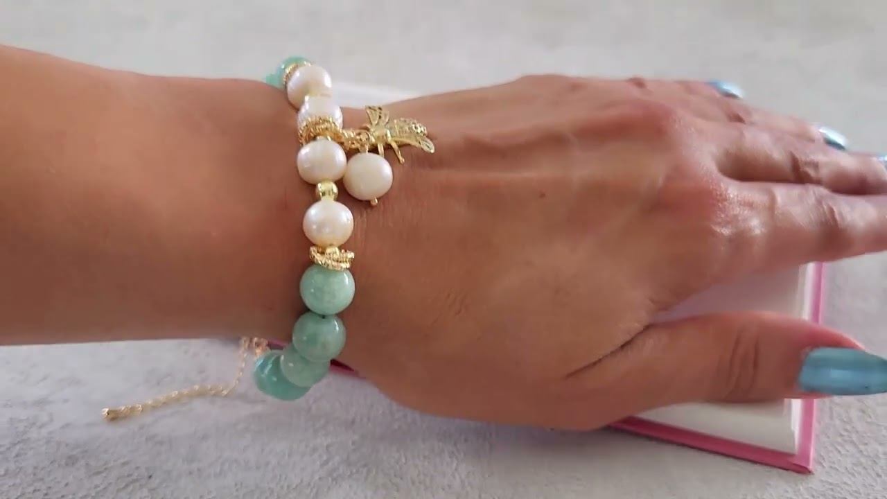 Браслет из амазонита, жемчуга с подвеской