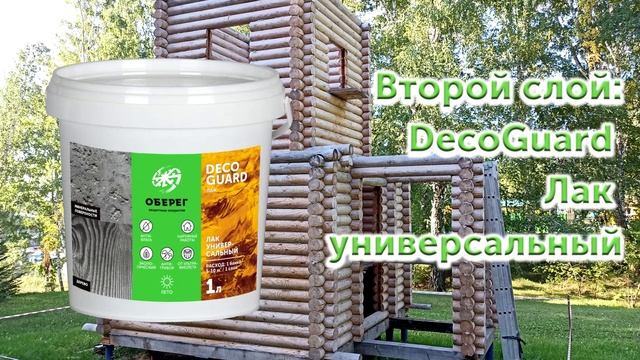 Летом 2022 года сруб будущей часовни был обработан BioGuard Антисептиком (КОНЦЕНТРАТОМ). Антисептик отлично защитил древесину в периоды сложных атмосферных условий. В конце лета 2023 года древесина покрашена DecoGuard Пропиткой защитно-декоративной с пчелиным воском. Для защиты слоя пропитки, вторым слоем, нанесен DecoGuard Лак универсальный.