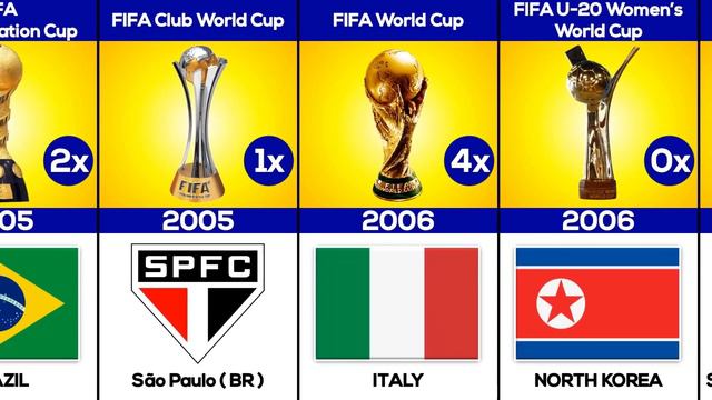 The FIFA World Cup is the biggest and most prestigious football tournament in the world. It is held every four years, and the winning team is crowned world champions. In this video, we take a look at the winners of every FIFA World Cup competition, including the men's and women's World Cups, the U-20 and U-17 World Cups, the FIFA Confederation Cup, and the FIFA Club World Cup. #fifaworldcup #worldcup #football #argentina #brazil #germany #france #messi #mbappe #neymar #ronaldo 🚨Stay connected with this channel, sometimes we upload 4 videos in 1 day. But we make sure to upload at least 1 to 2 videos in one day. 🚨 UPLOAD EVERY DAY! 🚨 🔔 PLEASE SUBSCRIBE 🔔