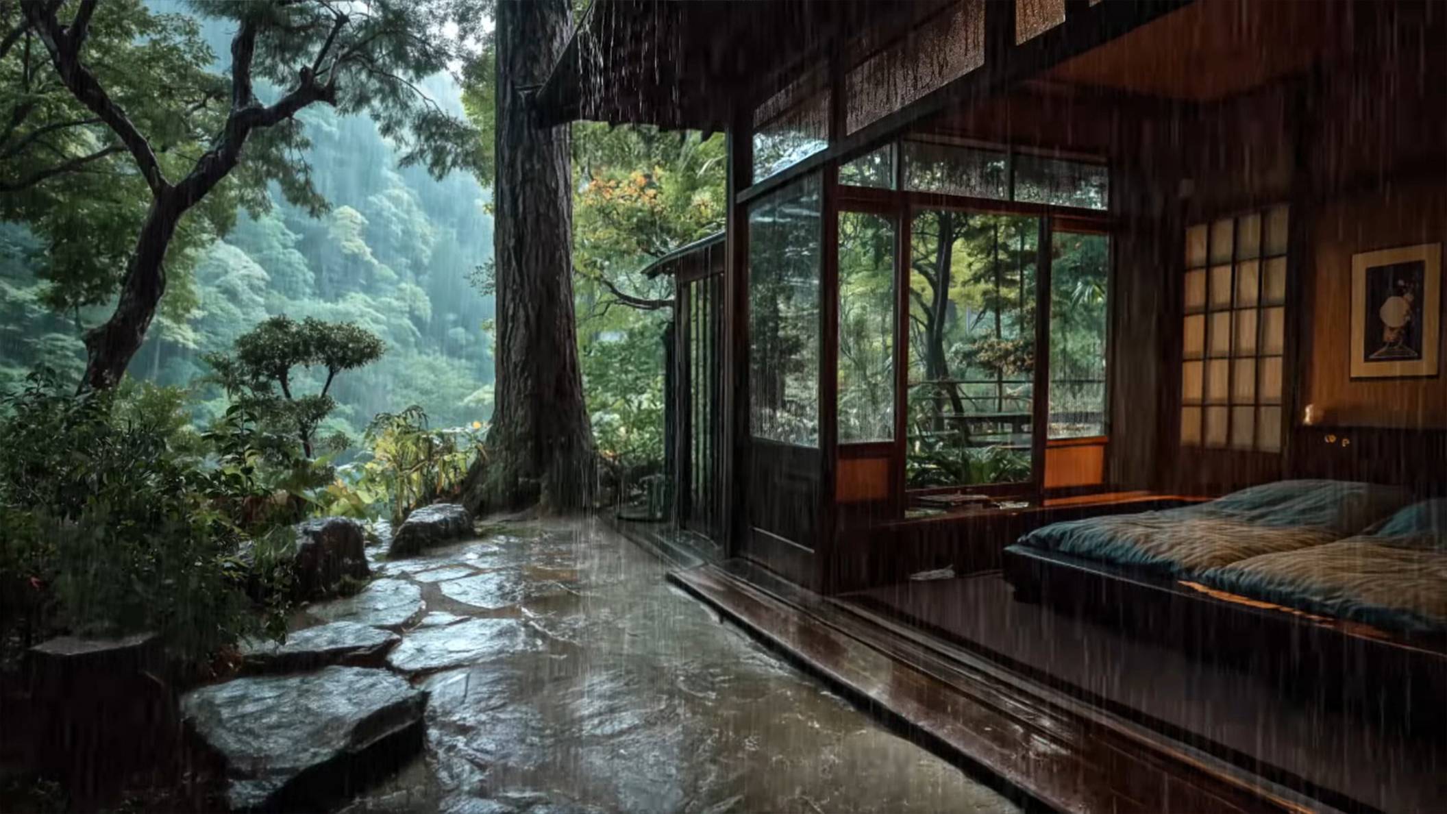 Шум Дождя в Японском Саду | Уютный Дом у Леса | Звуки Дождя для Сна и Спокойствия