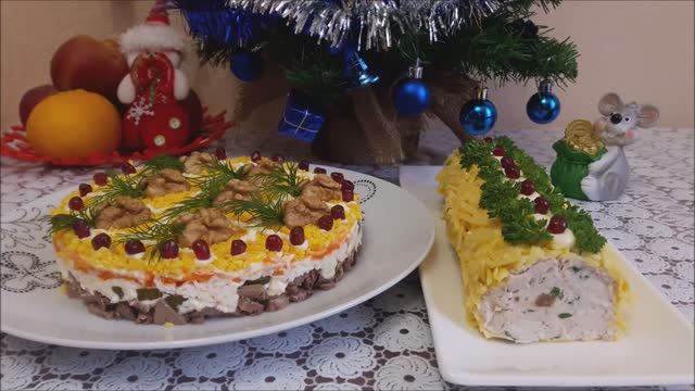 ЗАКУСОЧНЫЙ РУЛЕТ рецепт и Салат с ПЕЧЕНЬЮ КУРИНОЙ рецепт.Блюда на Праздничный Новогодний стол