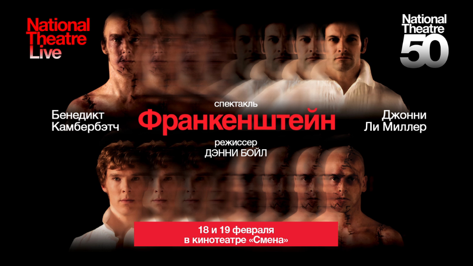 В рамках международного проекта «National Theatre Live» в кинотеатре «Смена» г. Киров пройдут показы знаменитого спектакля Дэнни Бойла «Франкенштейн». Демонстрируется в двух вариантах – исполнители ролей доктора и существа меняются местами: - «Франкенштейн: Камбербэтчн» (18 февраля). - «Франкенштейн: Ли Миллер» (19 февраля). Оригинальный звук (английский язык) + русские субтитры.
