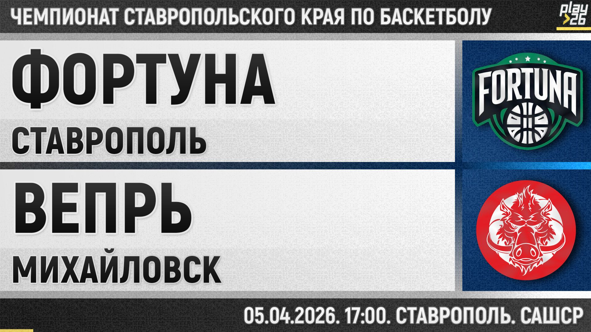 Чемпионат Ставропольского края по баскетболу. Сезон 2025-2026. Ставропольский дивизион. 15-й тур. Фортуна - Вепрь