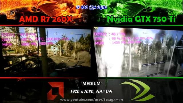 Dying Light PC gameplay test with 2GB edition video cards. Proper benchmarks. Only on my channel. Nvidia ZOTAC GeForce GTX 750 Ti 2GB GDDR5 1033 Mhz (boost: 1176 Mhz) / 5400 Mhz http://www.youtube.com/playlist?list=PLAfQQPLOoRHBELEGQ_lrkULKJvc8bJPlo Get it here: http://bit.ly/2dU5X0C * AMD Sapphire Radeon R7 260X 2GB GDDR5 1050/6000Mhz http://www.youtube.com/playlist?list=PLAfQQPLOoRHDkKthGcrVa4eZtzUAvvgdw Get it here: http://bit.ly/2ejHAG4 System: - CPU: Intel Core i7 920 C0 Bloomfield 2.66 Ghz ~ 4.0 Ghz OC (8 threads) - MOBO: Gigabyte EX58-UD5 F13 - RAM: Corsair DDR3 1600 Mhz CL9 (4x2GB) - SDD: Samsung 830 128 GB (OS&Apps) - HDD RAID0: 2x WD Caviar Black 1 TB (Games) - PSU: Corsair TX 750W - CASE: Chieftec Dragon CH-07B-B-OP - CPU COOLING: EK-KIT H3O - Supreme HF 360 - OS: Windows 7 Ultimate X64 - DISPLAY: BenQ GW2765HT 27'' WQHD 2560x1440 Video/graphics card drivers always up-to-date (Catalyst 15.5 Beta & Forceware 353.06) Check more GPU battles! - Part 1: http://www.youtube.com/watch?v=weYWN_Z8zls (Lost Planet 2, Resident Evil 5, Resident Evil 6, Grid 2, Bioshock Infinite, World in Conflict, Total War Rome 2, Just Cause 2) - Part 2: http://www.youtube.com/watch?v=llp3eHNvaA4 (Crysis, Crysis Warhead, DiRT 3, Hitman Absolution, Mafia 2, Batman Arkham Origins, Tomb Raider, Aliens vs Predator, Sniper Elite V2, Thief (2014)) *** All the benchmarks are recorded with HD Camera and not software to show you real performance. Want more REAL benchmarks? Stay tuned for more! If you have any questions, just shoot me! I will be glad to answer you. It wouldn't hurt to subscribe, now would it? If you like my stuff, please do so. TAGS: live footage video, osd, on-screen-display, 'real fps', sssagaman, hw testing, proper benchmarking procedure, side-by-side benchmarks, gpu cpu bottleneck, hd camera recording, msi afterburner, evga precision osd, aida64, hwinfo64, fraps Nvidia GTX 750 Ti vs AMD Radeon R7 260X in Dying Light Nvidia vs AMD GPU WAR battle