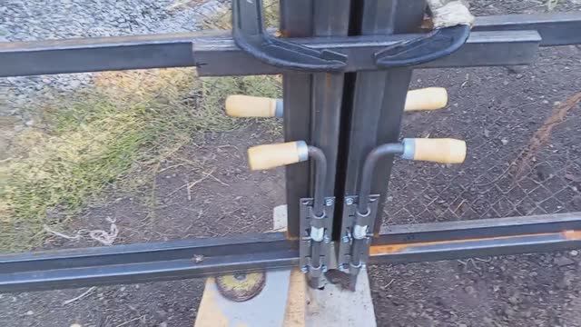 Работы и самоделки . Прикрутил к распашным воротам фиксаторы и ушки для замка . Осталось пошлифовать сварочные швы и покрасить ворота два раза .