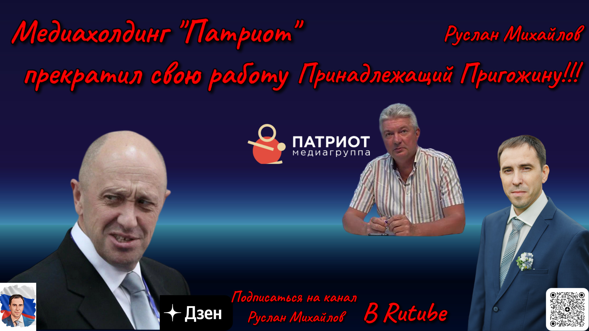 Руслан Михайлов политобозреватель сказал свое личное мнение. Медиахолдинг "Патриот" прекратил свою работу принадлежащий Пригожину! Медиахолдинг «Патриот», принадлежащий основателю ЧВК «Вагнер» Евгению Пригожину официально прекратил свою работу. Генеральный директор «РИА ФАН» Евгений Зубарев официально подтвердил эту информацию. Роскомнадзор заблокировал входящие в холдинг издания. ссылка на источник https://www.gazeta.ru/social/2023/06/30/17217524.shtml?utm_source=yxnews&utm_medium=desktop&updated Ставим лайки, подписываемся на канал Поддержка канала ЮMoney 4100117815002119 карта сбер банк 2202202311864023 подписывайтесь на мои каналы на вк vk.com/id558285967 группа на вк vk.com/club202827331 мой телеграмм канал https://t.me/ruslnmikhailov мой дзен канал https://dzen.ru/video/watch/649fc3f338c74a3ecbd54fd4 рутуб канал https://rutube.ru/channel/30740209/ #РусланМихайлов#медиахолдингпатриот#евгенийпригожин#чвквагнер#пригожин#россия#рутуб #rutube #рутубканал#видео#политика