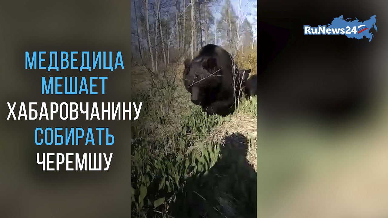 Медведица мешает хабаровчанину собирать черемшу