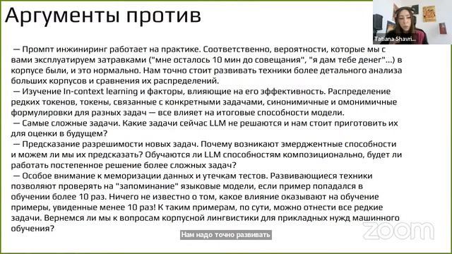 AI Alignment, Emergent Properties, ожидания от следующих LLM - Татьяна Шаврина — Семинар AGI