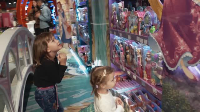 Детский мир - кукольный рай. Самое любимое развлечение девочек, куклы Барби и домики для них, игры на любой вкус. Мия с Ксюшей счастливы.