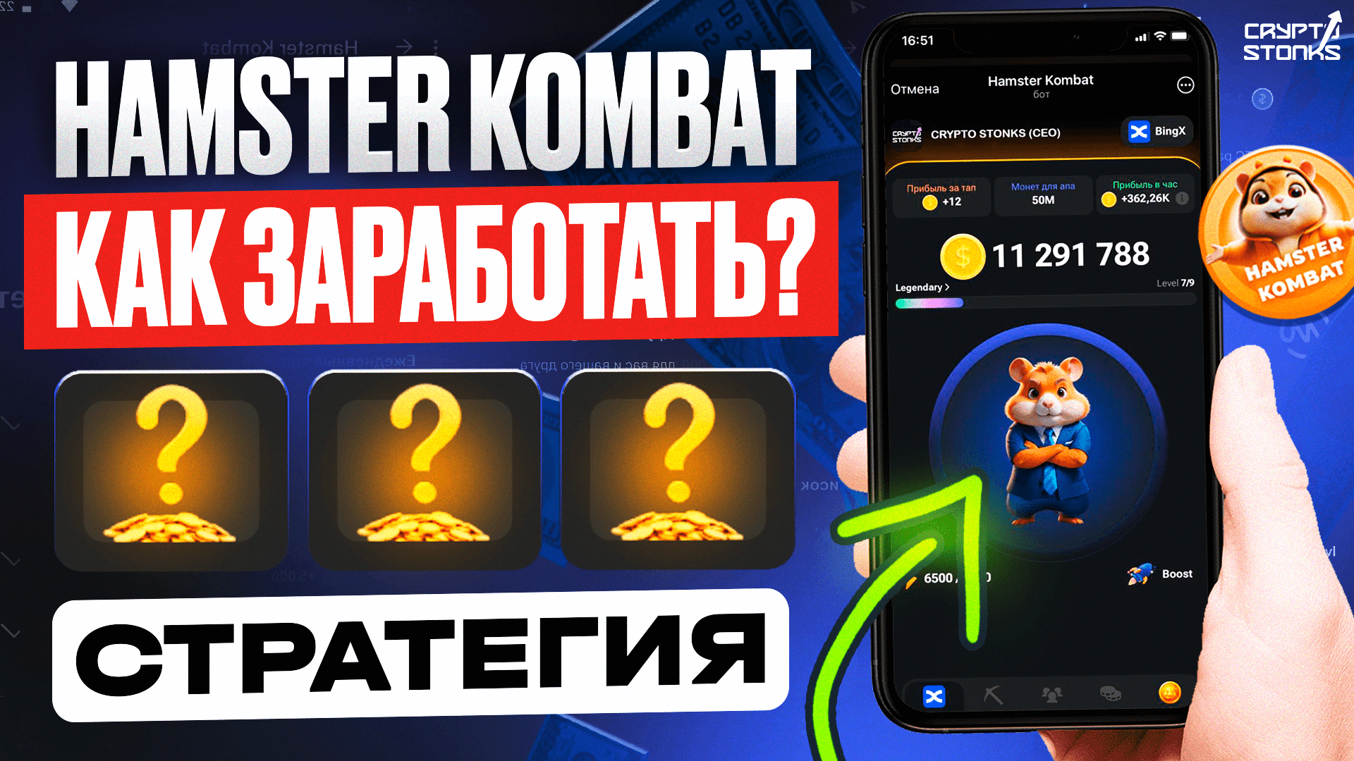 Телеграм канал - https://t.me/crypto_stonks_media/48 Телеграм чат (секретные карточки) - https://t.me/crypto_stonks_chat 🎬 ТОП-10 Телеграм Кликеров с ЗАРАБОТКОМ КРИПТЫ - https://youtu.be/ZGP2xPN-Xcs?si=kOuOzMqfZs3I3DtH 🎮 Играть в HAMSTER KOMBAT - https://t.me/hamster_kombat_bot?start=kentId454681611 Биржа BingX (без верификации) - https://bingx.com/invite/ROZV8OZK 🎁 Бонус: Повышенная 20% скидка на комиссию биржи ________________________________________________ Подписывайтесь и смотрите гайды по криптовалюте в сжатом формате, без воды. Мы ценим ваше время! Связь по рекламе/сотрудничеству: https://t.me/ceo_crypto_stonks *Ранее канал имел название Support Crypto, 15 мая 2024 года мы объединили наши проекты в единую экосистему "CRYPTO STONKS". ________________________________________________ ПОЛЕЗНЫЕ КРИПТО ССЫЛКИ: ⚪️ Купить холодный крипто-кошелек (от 50$): 1) Ledger офф сайт - https://shop.ledger.com/?r=380a8f6dd6c1 - Ledger в России - https://cryptonist.ru/catalog/ledger/ (промокод на 5% скидку: SCRYPTO) 2) Trezor офф сайт - https://trezor.go2cloud.org/SH5F - Trezor в России - https://cryptonist.ru/catalog/trezor/ (промокод на 5% скидку: SCRYPTO) 3) Safepal офф сайт - https://store.safepal.com/safepal-s1-hardware-wallet.html?ref=ndizogi - Safepal в России - https://cryptonist.ru/catalog/safepal/ (промокод на 5% скидку: SCRYPTO) 4) Tangem - https://tangem.com/ru/ (промокод на 10% скидку: 6NA5Q9) 🟠 Проверенные крипто обменники: (покупка/продажа крипты за реал) 1) OneMoment - https://onemoment.cc/?ref=8e20d044-50a5-47d2-be0a-8e07ad017d0a 2) CoinStart - https://coinstart.cc/?ref=a99a29e2-b169-40ac-be5b-1ef8602e40fe 3) Sova - https://sova.gg/?ref=987cf84b-4664-41a9-b130-48d4db894b4f 4) 7Money - https://7money.co/?rid=18161 ⚡ ТОП 10 ЛУЧШИХ БИРЖ КРИПТОВАЛЮТ - https://crypto-stonks.com/ ________________________________________________ О ЧЕМ ВИДЕО: В этом видео мы познакомимся с проектом Hamster Kombat и ответим на основные вопросы: Как быстро прокачать аккаунт? Как заработать? Когда ожидать Листинг? И как вывести токены? Тема: Hamster Kombat как заработать, Хамстер Комбат как быстро прокачать аккаунт, Hamster Kombat когда аирдроп, Хамстер Комбат когда листинг токена, Комбо карточки Hamster Kombat #крипта #криптовалюта #hamsterkombat #хамстеркомбат Дисклеймер: Помните, что информация, предоставленная в этом видео, не является финансовым советом. Работа с криптовалютами сопряжена с высокими финансовыми рисками. Перед инвестированием, рекомендуется провести собственное исследование и проконсультироваться с финансовыми специалистами. ________________________________________________ ТАЙМИНГИ: 0:00 - О проекте Hamster Kombat 0:57 - Стратегия быстрой прокачки аккаунта 3:01 - Когда Листинг и Аирдроп от Hamster Kombat 3:47 - Как вывести деньги из Hamster Kombat 4:25 - Тренд кликеров и как на этом заработать
