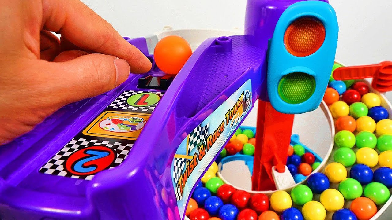 Видео для детей. Запускаем разноцветные шарики через большой трамплин. Шарики в лабиринте. Детям