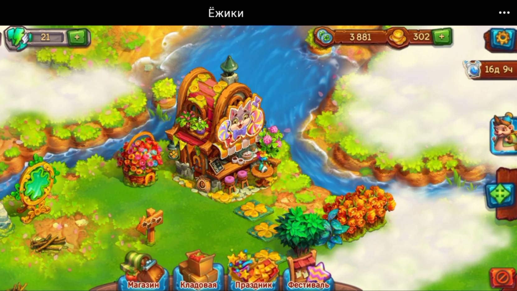 Ёжик чинит второй портал, получает второй уровень Верстака с подарками, находит Праздничную кофейню и золотую яблоню, чинит Праздничную кофейню, расчищает туман на острове и находит третий портал. Попутно Ёжик открывает несколько сундуков.