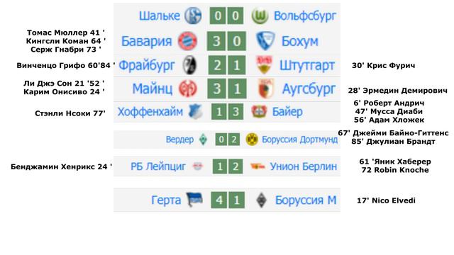 Чемпионат Германии БУНДЕСЛИГА. 20-ТУР Результаты,Таблица,Расписание