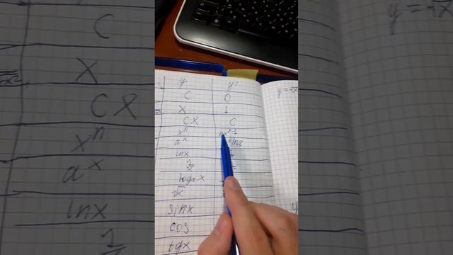 К сожалению не получилось оставить мою таблицу производных в описании... Погуглите сами. Откройте яндекс или гугл, неважно, наберите в поисковой строке таблица производных и посмотрите картинки, у вас всё получится.