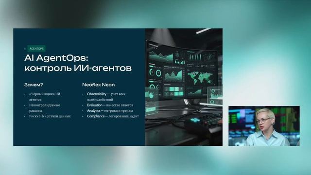 Светлана Маркова, главный архитектор Neoflex, приняла участие в вебинаре, посвященном внедрению GenAI в бизнес-процессы. В своем выступлении «Корпоративный ИИ-ассистент на базе GigaChat и Neoflex Neon» она разобрала на практическом кейсе, как за 52 дня запустить R&D-лабораторию ИИ-гипотез для 1500 пользователей крупного холдинга, как решения адаптируются под конкретные бизнес-процессы и какие результаты получают компании после внедрения. Также Светлана подчеркнула, что ключевым фактором успеха стала не просто интеграция с API, а использование платформенного подхода AgentOps, который позволяет управлять десятками или сотнями AI-агентов, контролировать безопасность данных и оценивать экономическую эффективность каждой гипотезы.
