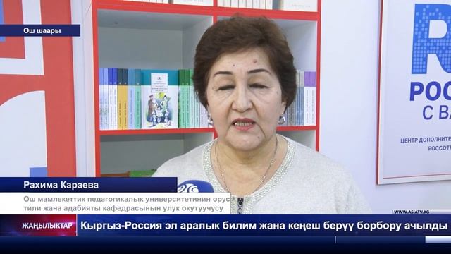 1.11.2024 г. В Южной столице Кыргызстана состоялось открытие Центра дополнительного образования Россотрудничества В Ошском государственном педагогическом университете им. А.Мырсабекова состоялось открытие Центра дополнительного образования. Центр дополнительного образования создан при поддержке Россотрудничества в рамках реализации Государственной программы Российской Федерации «Поддержка и продвижение русского языка за рубежом». В Центре будут реализовываться программы по изучению русского языка и общеобразовательным предметам на русском языке, а также учебно-методические мероприятия по поддержке преподавателей русского языка с привлечением партнерских организаций из России. «На базе данного Центра не только абитуриенты, студенты, преподаватели, но и все желающие будут иметь возможность изучать и совершенствовать знания русского языка и литературы, культуры и традиций народов России», - отметил руководитель Русского центра в Оше Дмитрий Аврам. Как рассказал заведующий Центра дополнительного образования, преподаватель ОшГПУ Мусабек Сатыбалдиев: «Открытие Центра дополнительного образования на базе университета – является большим подарком для студентов и преподавателей вуза, который открывает большие возможности для изучения русского языка будущим педагогам». Центр предназначен для проведения образовательных и общественно-культурных мероприятий и оснащён самой современной техникой, удобной и функциональной мебелью. Библиотечный фонд Центра насчитывает порядка 700 экземпляров учебно-методической, справочной и художественной литературы. В церемонии открытия Центра русского языка приняли участие представители мэрии города Ош, Генерального консульства России в Оше, представители Кыргызско-Узбекского международного университета, Ошского технологического университета, профессорско-преподавательский состав ОшГПУ, студенты и гости. Видео телеканал Asia TV #Россотрудничество #РусскийдомвОше #ОшГПУ