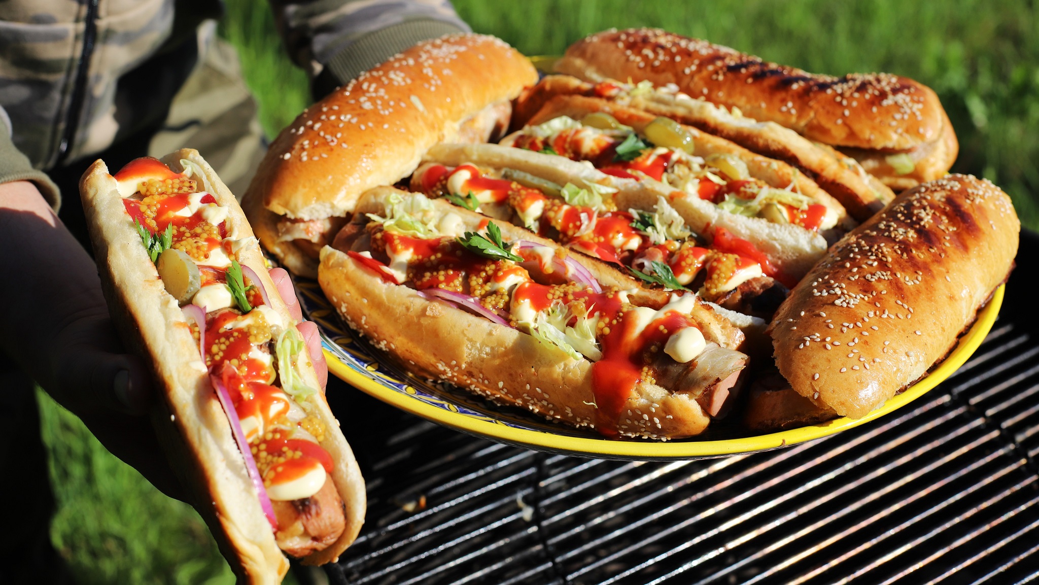 Хот доги на угольном гриле