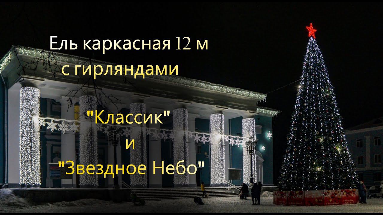 Ель каркасная 12 м + гирлянды: "Классик" и "Звездное небо"