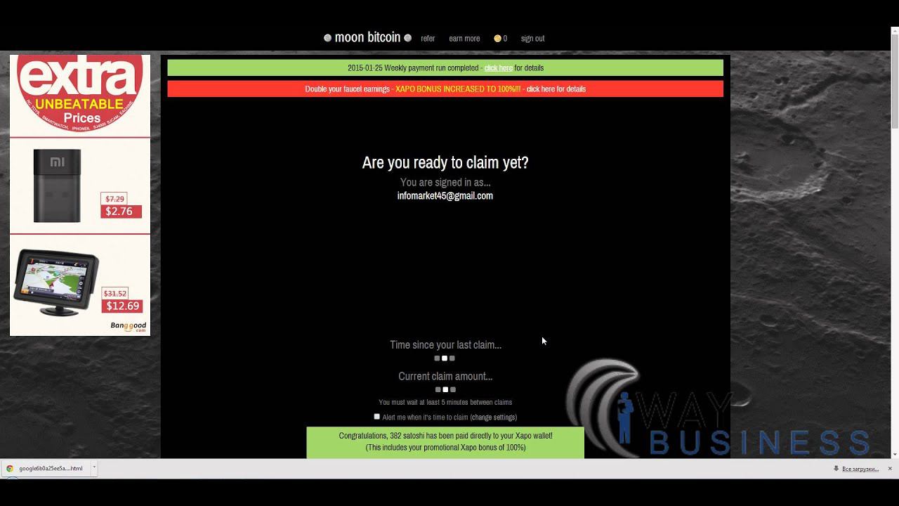 Нашел сайт в интернете moonbitcoin, который позволяет добавать биткоины на автомате, даже когда выключен комп. Просто заходите 1-3 раз на сайт в день и снимайте полученные сатоши. ------------------------------------------------ Переходи по ссылке чтобы начать получать биткоины http://waybusiness.ru/w9x8 Майнинг - https://yobit.biz/ru/mining/?bonus=ACZwA ------------------------------------------------ Подписывайся на канал: http://www.youtube.com/subscription_center?add_user=alexmedia45 ============================