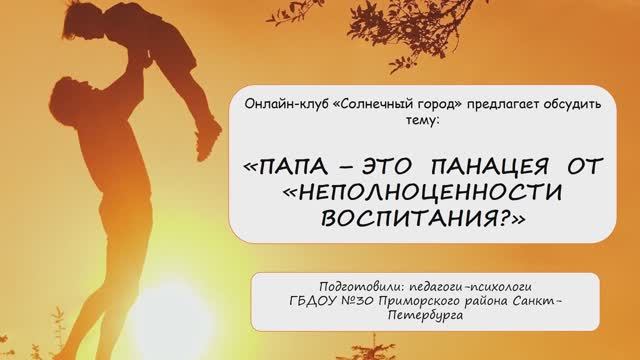 онлайн-клуб "ПАПА - это панацея от неполноценности воспитания?"