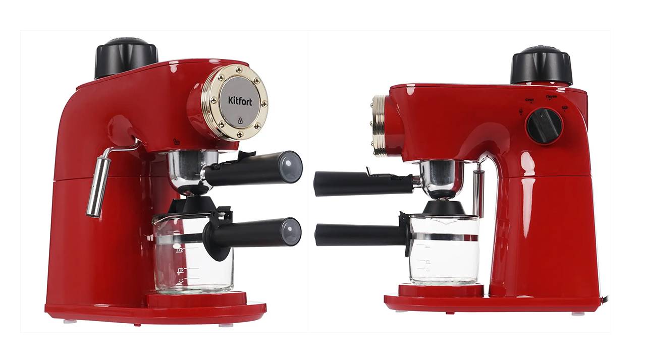 Домашняя бойлерная красная кофеварка рожкового типа с капучинатором