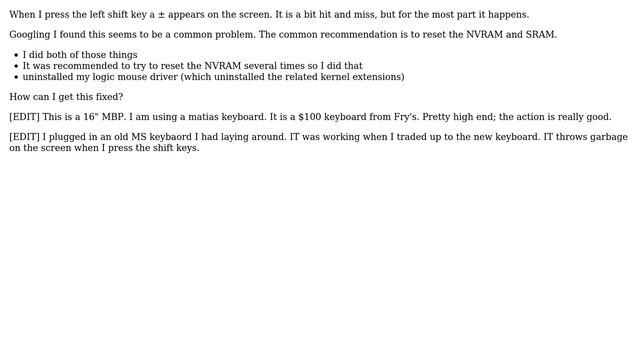 Apple: Left shift key outputs (2 Solutions!!)