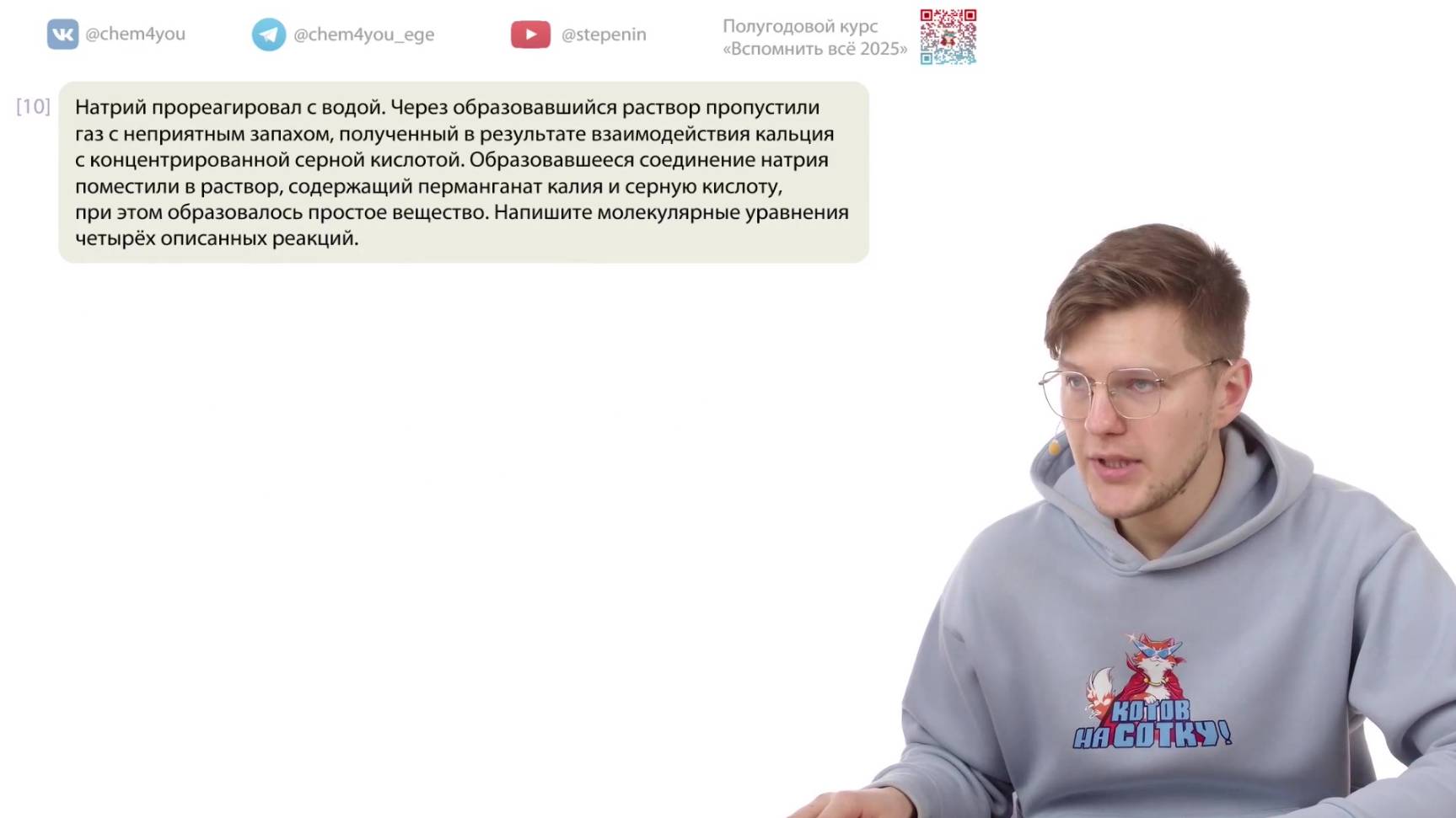 📗 Учебник по органической химии. Углубленный уровень, 10 класс, ФГОС: https://stepenin.ru/tasks/ebook-10 📑 Много тестов для подготовки к ЕГЭ по химии: 1. Задания по неорганике (больше 2000): https://stepenin.ru/tasks/common 2. Вся база заданий (больше 6000): https://stepenin.ru/tasks 💯🧠 Ждем всех на наших курсах подготовки к ЕГЭ: 👉 Курс подготовки к ЕГЭ-2025 по химии для 11 классов: https://stepenin.ru/go/6u3araee 👉 Курс подготовки к ЕГЭ-2026 по химии для 10 классов: https://stepenin.ru/go/H45L7wZZ 📚 Рабочая тетрадь по органической химии: https://stepenin.ru/store/book/book-organic 📚 Книга «Тематические тесты» (500 страниц) : https://stepenin.ru/store/book/tests-bigbook 📚 Книга «40 вариантов к ЕГЭ-2025» (350 страниц): https://stepenin.ru/store/book/sbornik30 📚 Задача 33. Углеводороды: https://stepenin.ru/store/book/hydrocarbons-book ============================= 🧪 Подготовка к ЕГЭ по химии на самые высокие баллы на наших курсах: https://stepenin.ru/go/6u3araee Телефон Андрея Степенина: +7 926 625-73-33 📚 Много полезного образовательного контента на наших площадках: 🐈 ВК химия: https://vk.com/chem4you 🦭 ВК биология: https://vk.com/bio4you ✈️ Химическая тележка 11 класс: https://t.me/chem4you_ege ✈️ Химическая тележка 10 класс: https://t.me/stepenin10 ✈️ Биологическая тележка: https://t.me/bio4you