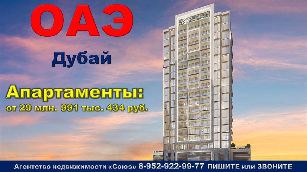 Подпишитесь на нас. Благодарим !!! https://www.youtube.com/@nedvigimoct/videos - мы на Ютубе https://dzen.ru/nedvigimoct?tab=longs&utm_referrer=dzen.ru - мы на Дзене https://rutube.ru/channel/27083000/videos/ - мы на Рутубе https://vk.com/club223108371 - мы в ВК https://ok.ru/lyubayan - мы в Ок Агентство недвижимости «СОЮЗ» Покупайте: апартаменты в ОАЭ. Дубай г., Бизнес Бей р-н, 12 ул. Агент по новостройкам: 89529229977 (WhatsApp) Цены на апартаменты точно такие же как и у застройщика. Апартаменты продаются БЕЗ РИЭЛТОРСКОЙ КОМИССИИ !!!. 1к. апартаменты: от 29 млн. 991 тыс. 434 руб. Площадь общая: 60,2 м2 - 78,04 м2 2к. апартаменты: от 40 млн. 611 тыс. 057 руб. Площадь общая: 85,01 м2 - 95,88 м2 Срок сдачи: 3 кв. 2025 Срок выдачи ключей: 4 кв. 2025 Договор: ДДУ Тип дома: монолитный Тип отделки: отделка "под ключ" Парковка: есть Потолки: 2,8 м. Преимущества:Магазины и рестораны на первых 4-х этажах. Собственный двор. Просторные планировки апартаментов. Панорамное остекление. Современный фитнес-центр, инфинити-бассейн, детский бассейн. Лаунж зона с шезлонгами, детская игровая площадка, зона для барбекю. Уличные душевые кабинки. Описание комплекса:17-тиэтажный комплекс на 168 апартаментов в Business Bay, одном из самых востребованных районов Дубая. Апартаменты с 1-й и 2-мя спальнями расположены начиная с четвертого этажа башни, а первые этажи займут магазины и рестораны. На подиумной части комплекса также разместился собственный двор, поделенный на различные зоны для отдыха с семьей или друзьями. Просторные планировки апартаментов, в сочетании с выразительной акцентной мебелью на фоне светлой палитры отделки, создают особое настроение, а панорамное остекление не только наполняет комнаты естественным светом, но и открывает захватывающие виды на небоскребы района Business Bay. На территории комплекса есть современный фитнес-центр, где можно потренироваться самостоятельно или под присмотром тренера. После тренировки будет приятно расслабиться в инфинити-бассейне или устроиться на шезлонге в лаунж зоне. Под открытым небом также находится площадка для фитнеса, несколько уличных душевых кабинок и зона для барбекю. Дети смогут активно проводить время на игровой площадке и в отдельном бассейне. Жилой комплекс удачно расположился в непрерывно развивающемся деловом районе Дубая — Business Bay. Отсюда можно быстро добраться до других районов города, а канал, который проходит через Business Bay, ведет прямо к пляжу Jumeirah Beach и заливу Dubai Creek. Дорога до Downtown Dubai займет всего 10 минут на машине. Столько же понадобится, чтобы добраться до знаменитых торговых центров Bay Avenue и Dubai Mall. Самая популярная прогулочная набережная в Dubai Marina, пляж Palm Jumeirah и Dubai International Airport находятся в 15-ти минутах езды, а до пляжа La Mer можно доехать примерно за 17 минут. Внешняя инфраструктура - парк Safa Park (7 на машине), парк Bay Avenue Park (8 минут на машине), школа Clarion School (6 на машине), школа Dubai International School Al Quoz (7 на машине), университет International Horizons College (6 на машине), университет The Canadian University of Dubai (10 на машине), Downtown Dubai (10 на машине), Dubai Marina (15 на машине), пляж Palm Jumeirah (15 на машине), пляж La Mer (17 на машине), торговый центр Bay Avenue (10 на машине), торговый центр Dubai Mall (10 на машине), торгово-развлекательный центр Mall of the Emirates (14 на машине), гольф-клуб The Track Meydan Golf (9 на машине), гольф-клуб Dubai Hills Golf Club (10 на машине) , гольф-клуб Dubai Creek Golf & Yacht Club (19 на машине), международный аэропорт Dubai International Airport (15 на машине), международный аэропорт Al Maktoum International Airport (32 на машине).