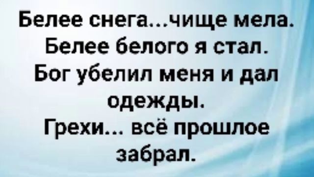 ХРИСТИАНСКИЕ ПЕСНИ ДЛЯ ХВАЛЫ И ПОКЛОНЕНИЯ ПРОСЛАВЛЕНИЯ ВООДУШЕВЛЕНИЯ ЕВАНГЕЛИЗАЦИИ #господь#музыка#христианская_музыка#музика#христианскиепесни#бог#христианскиестихи#любовь#христианство#стихи#песня#песни#иисус#иисусхристос#иисусмойбог#иисус_христос#иисусбог#иисусгосподь#хвалы_и_поклонения#хваление#хвала#прославление "Я ОПРАВДАН!" СЛОВА, МУЗЫКА: ЖАННА ВОЛКОВА-ВАРЛАМОВА Стихи Жанна Волкова(Варламова) Припев: Белее снега...чище мела. Белее белого я стал. Бог убелил меня и дал одежды. Грехи... всё прошлое забрал. Грехи Ты смыл ...Были багрянные. Их больше нет. Я... убелённый! Омыл меня Ты и сделал чистым. Весь грех, позор на Крест понёс! Припев: Белее снега...чище мела. Белее белого я стал. Бог убелил меня и дал одежды. Грехи... всё прошлоезабрал. О, мой Иисус...Ты сделал чистым... Меня Ты Кровью оправдал. Весь грех распят! Я...новый... чистый! Весь грех, позор у Божьих пят. Припев: Белее снега...чище мела. Белее белого я стал. Бог убелил меня и дал одежды. Грехи... всё прошлое забрал. Омыл Ты меня...и сделал чистым... Чтоб жизнь я новую начал. Чтоб стал листком из Божьей книжки... С Иисусом жизнь продолжал. Припев: Белее снега...чище мела. Белее белого я стал. Бог убелил меня и дал одежды. Грехи... всё прошлое забрал. 08.01.2019 Жанна Волкова-Варламова