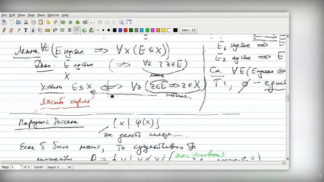 Мат. логика в МФТИ. Темы: основы аксиоматической теории множеств; отношение принадлежности, аксиома основания, равенство и включение, аксиома равенства, построение множеств указанием всех элементов, выделение подмножества, пустое множество, парадокс Рассела, множество-степень, объединение и пересечение множества, операции и тождества алгебры множеств.
