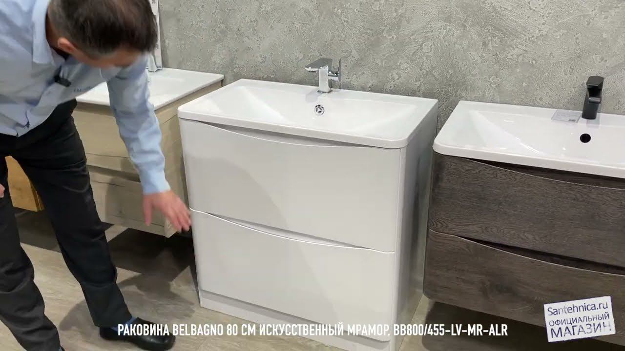 Тумба под раковину BelBagno Acqua-800, 80 см, Bianco Lucido, белый глянцевый, ACQUA-800-2C-PIA-BL https://www.santehnica.ru/product/305051.html Раковина BelBagno, 80 см, искусственный мрамор, BB800/455-LV-MR-ALR https://www.santehnica.ru/product/248484.html Зеркало BelBagno, 70 х 80 см, алюминиевая рама, хром, SPC-AL-700-800 https://www.santehnica.ru/product/286051.html Santehnica.ru работает с 2001 года и является одним из самых крупных интернет-магазинов в России. За 18 лет работы мы сделали более 95 000 доставок для наших клиентов. Сейчас в нашем интернет-магазине сантехники размещено более 110 000 товарных позиций. В нашем интернет-магазине представлены ванны, раковины, унитазы, биде, душевые кабины, сантехнические инсталляции, кухонные мойки наиболее популярных производителей: Jacob Delafon, Roca, Grohe, Gustavsberg, Ido, Ifo, Hansgrohe, Oras, Am.Pm, Appollo, Ravak, Damixa, Geberit, Migliore, Niagara, Cezares, Kaldewei, Villeroy & Boch, Nicolazzi, Twyford, Duravit, Hatria, Blanco, Laufen, Ideal Standard, Kludi, Акватон и т.д.