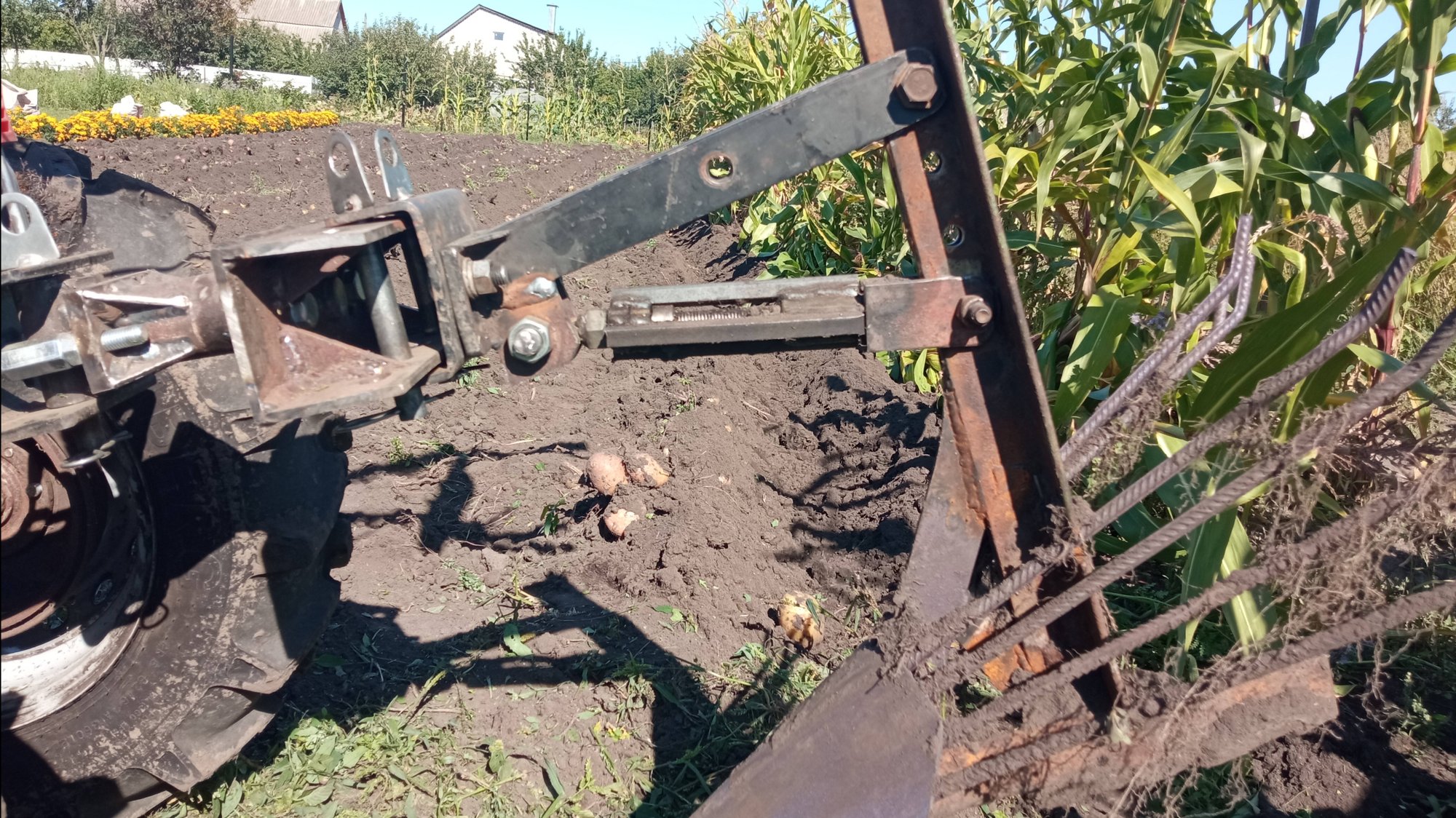Усиление стойки веерной копалки мотоблока подручными материалами
