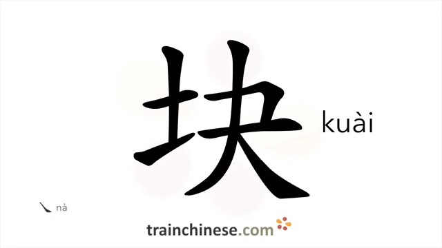 块 (kuài) piece, lump; (for a piece); dollars