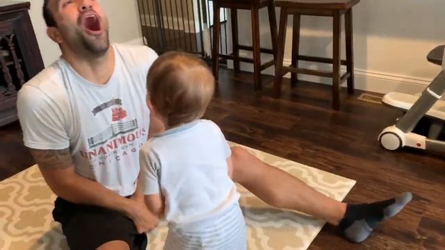 Малыш попал мячиком между ног папе. #прикол #дети #папа #мяч #фейл