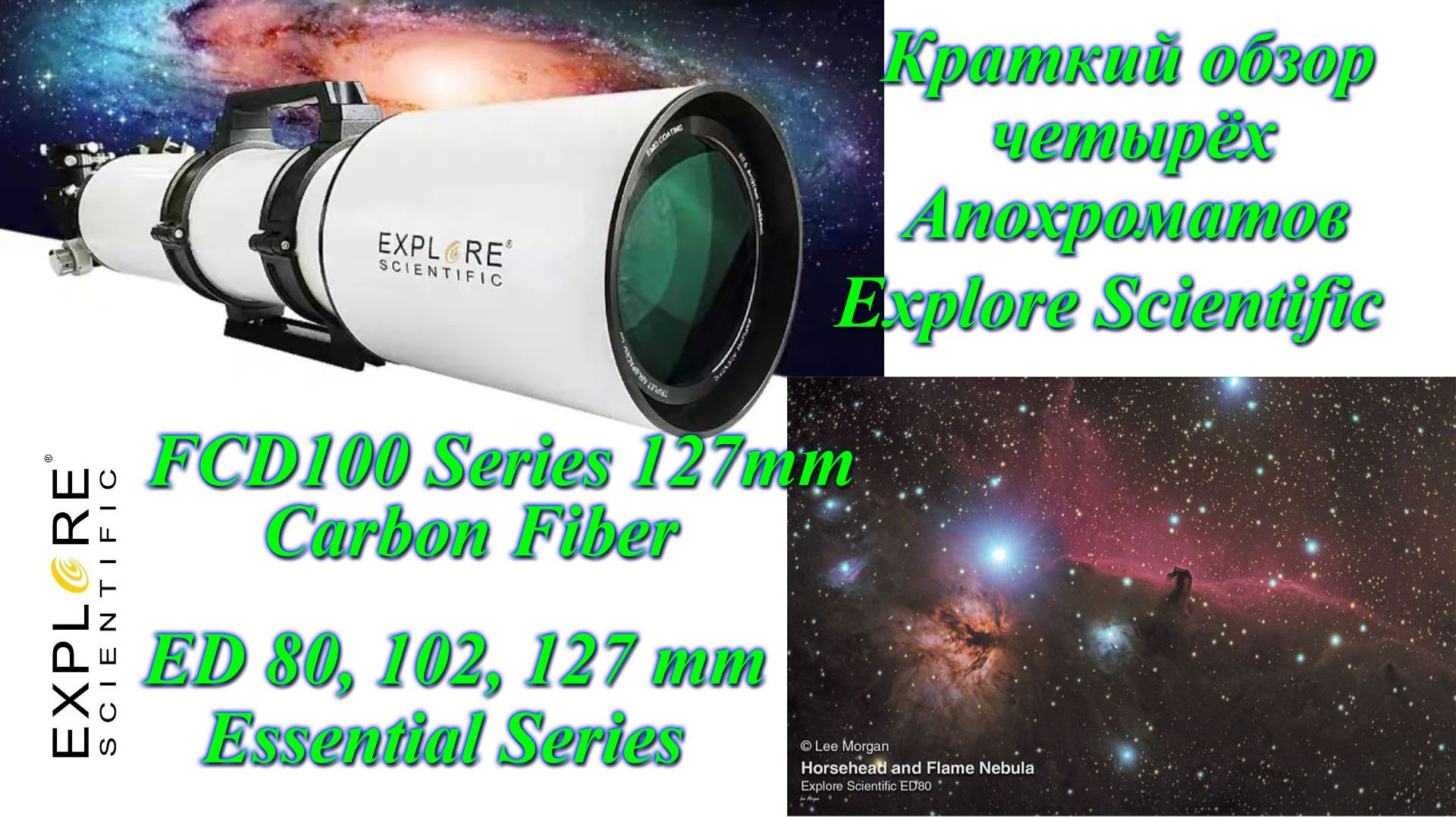 Краткий релиз четырёх апохроматов с тремя стёклами (триплет) от компании Explore Scientific, доступных на заказ через ОЗОН. Остальные модели может будут доступны позже.