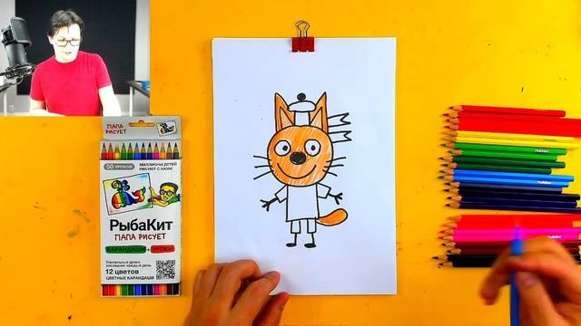 В гостях ТРИ КОТА простые рисунки РыбаКит папа рисует