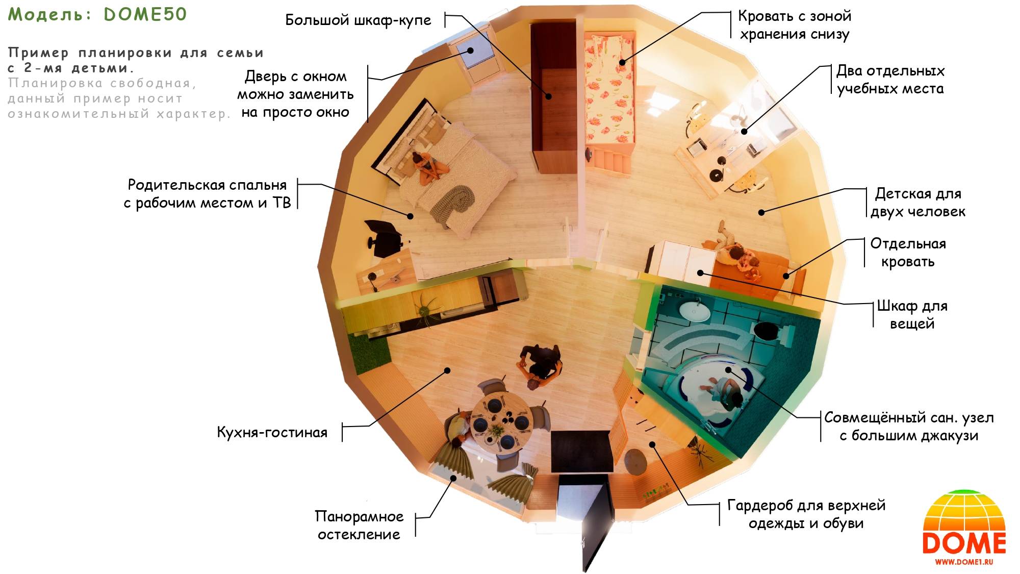 Презентация модели DOME50: https://clck.ru/TEuLC Скачать шаблон планировки: https://clck.ru/TEuMo Официальный сайт:https://www.dome1.ru/ Наша группа: https://vk.com/domesam Телефон: 8-927-650-59-58 пишите нам в WhatsApp, Viber и Telegram. С помощью каркаса DOME50 можно построить не только купольный, круглый дом, но сделать его пристройкой в которой можно организовать: зимний сад, беседку, баню, сауну, хаммам, крытый бассейн, мини спа и другие решения, а ограничение только ваша фантазия.