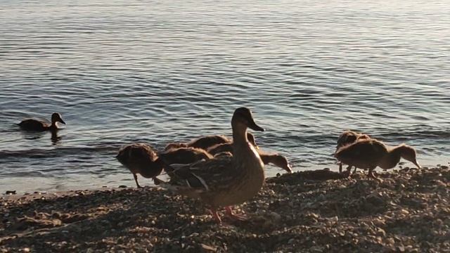 Мимо проплывали утята с уткой 🦆, но от лепешки они не могли отказаться 😁. Красивости Обского моря