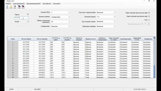 Программирование рации "Терек Спорт Мини".