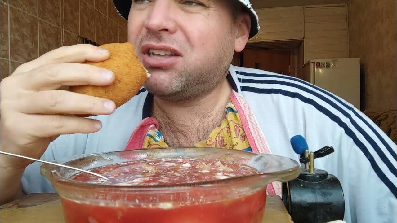 ОБЖОР БОРЩ из тушëной свинины/МУКБАНГ зраза в кляре