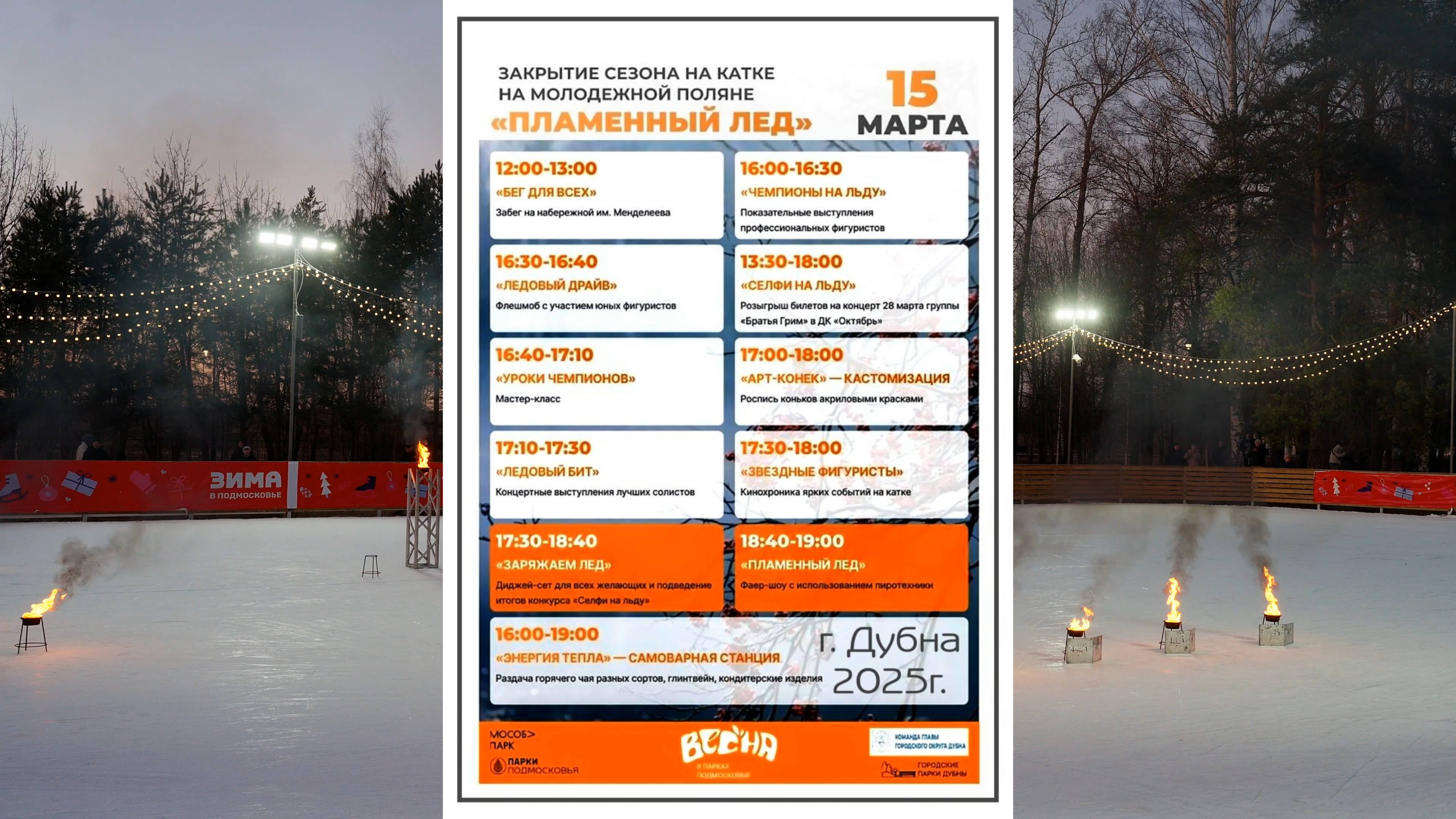Закрытие ледового сезона в городе Дубна Московской области 15 марта 2025 года. Огненное Шоу. Снято на камеру / Taken on SonyA7c2+Tamron35-150 Closing the ice season in the city of Dubna of the Moscow Region March 15, 2025. Fiery show.