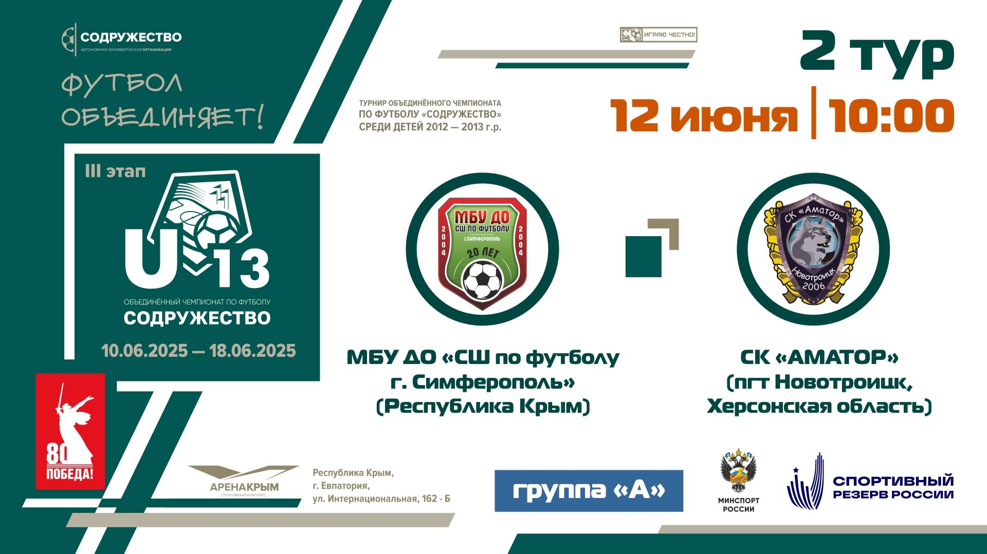 2 ТУР [Группа А] | МБУ ДО «СШ по футболу» (Симферополь) - СК «Аматор» (Новотроицкое, Херсонская обл)