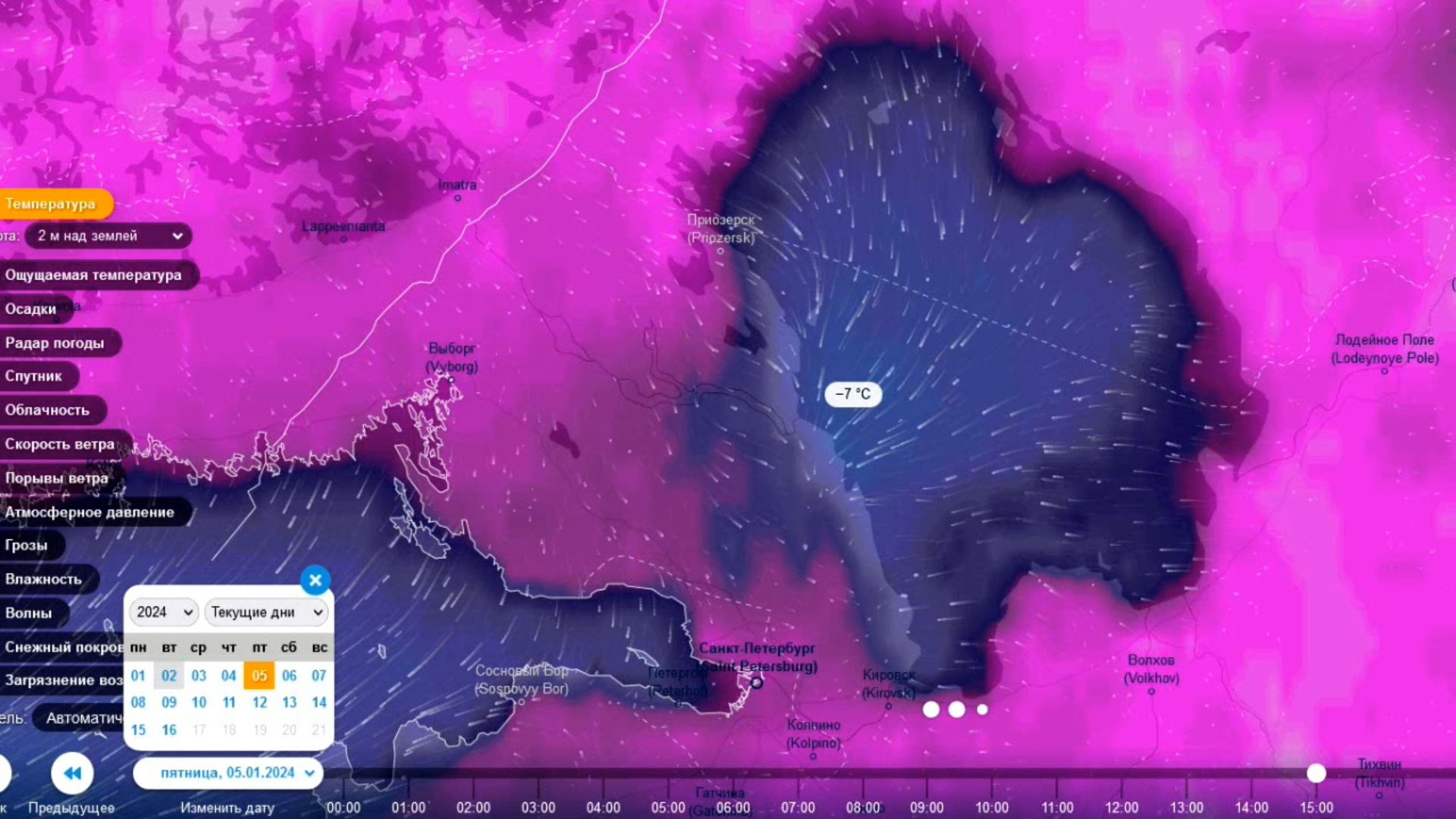 Мощный озёрный эффект над Ладожским озером с 3 по 6 января в условиях арктического воздуха
