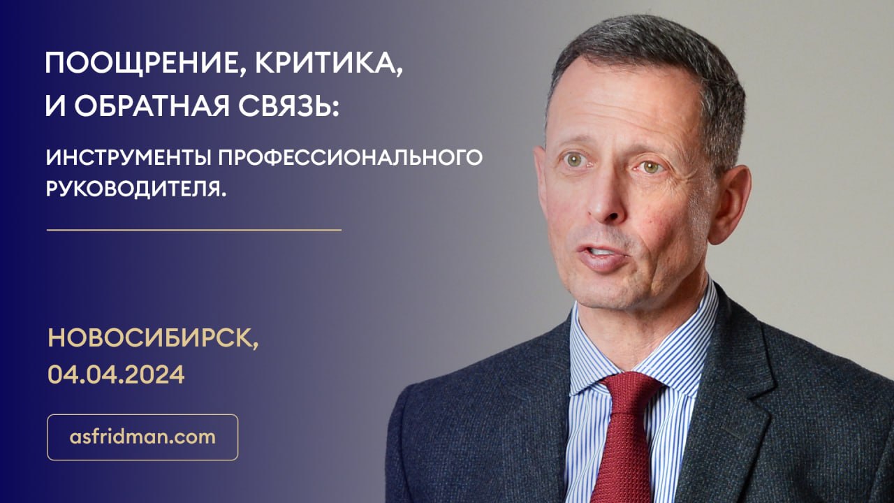 ПООЩРЕНИЕ, КРИТИКА, И ОБРАТНАЯ СВЯЗЬ: Инструменты профессионального руководителя. Семинар Александра Фридмана в Новосибирске, 4 апреля 2024 года. Подробности и регистрация: https://fridman.kadrek.ru/#april4