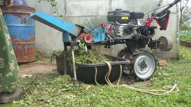 Измельчитель ботвы в работе